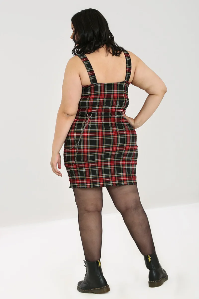 Black and red tartan bengaline pencil dressFitted pencil dress with metal trimsSweetheart necklineAdjustable wide straps…